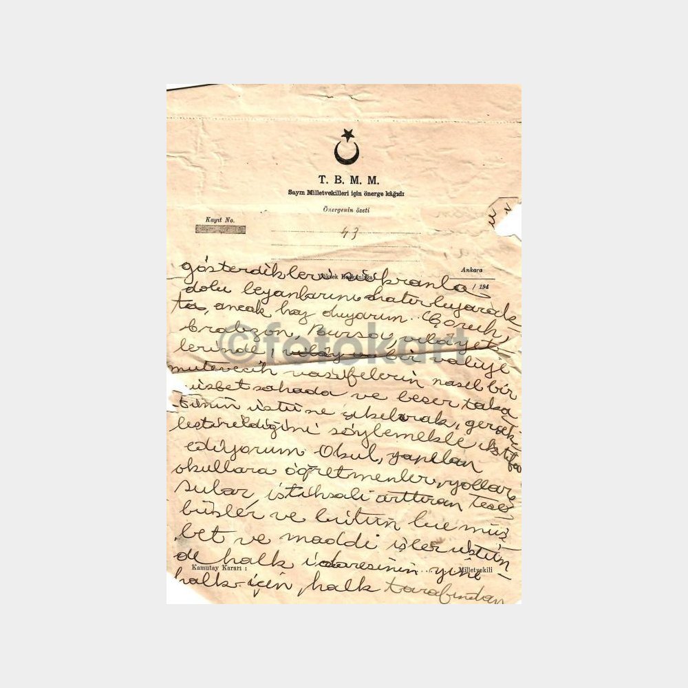 “1952 TBMM Sayın Milletvekilleri İçin Önerge Kağıdı” için yorum yapan ilk kişi siz olun