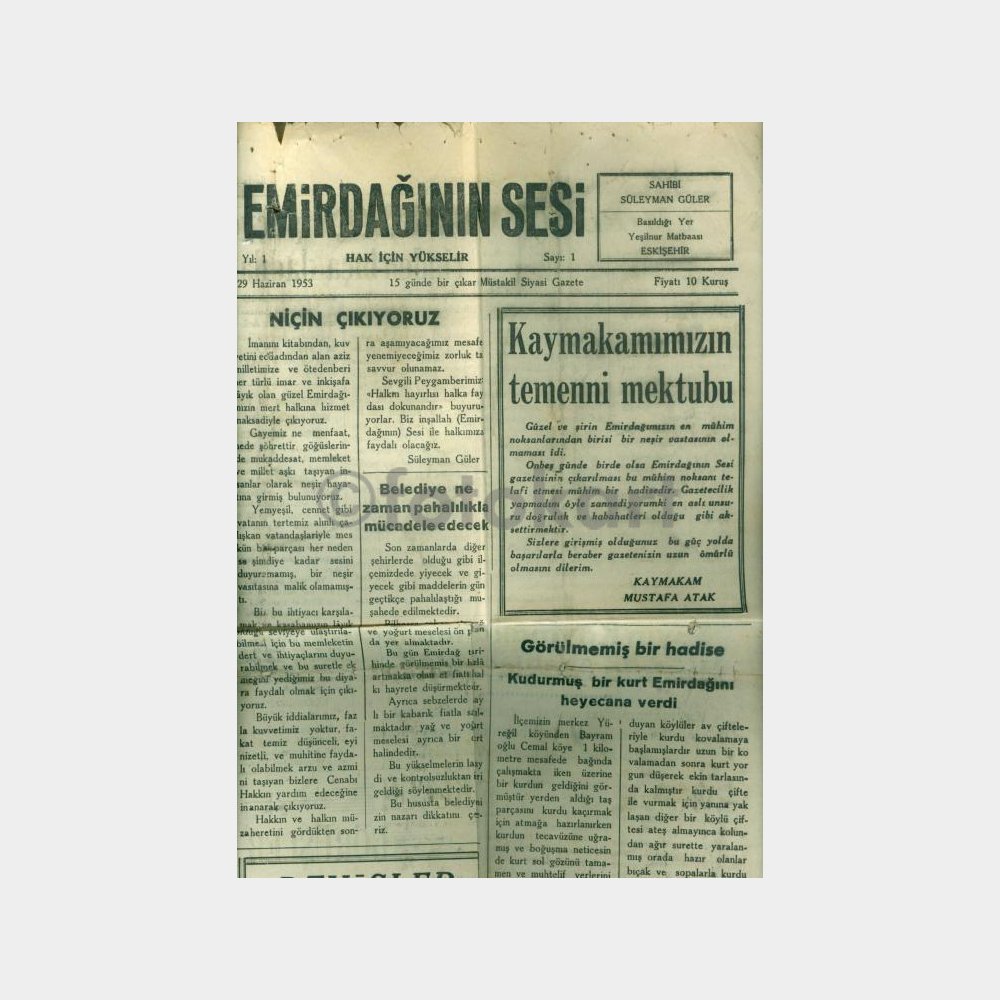 1953 Emirdağının Sesi No.1 Afyon Gazete