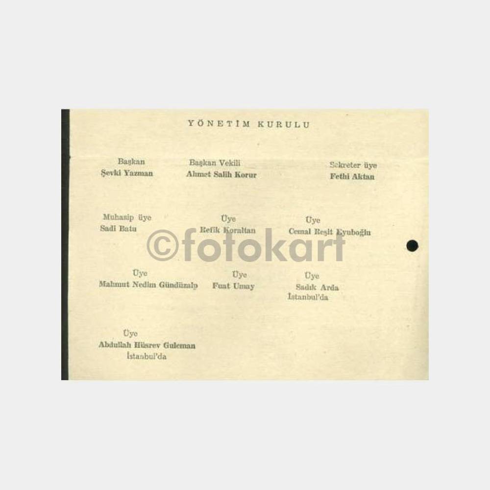 4 sayfa halinde, yapılan işler bilanço hesaplar var. Yönetim kurulunda Refik Koraltan-Ahmet Salih Korur gibi dönemin önemli isimleri var.