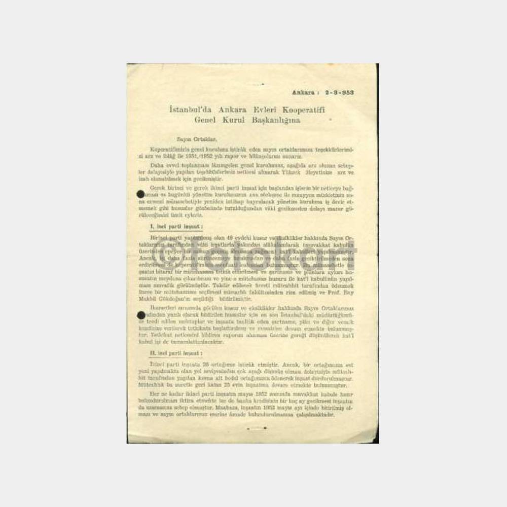 1953 İstanbul’da Ankara Evleri Kooperatif Yazısı