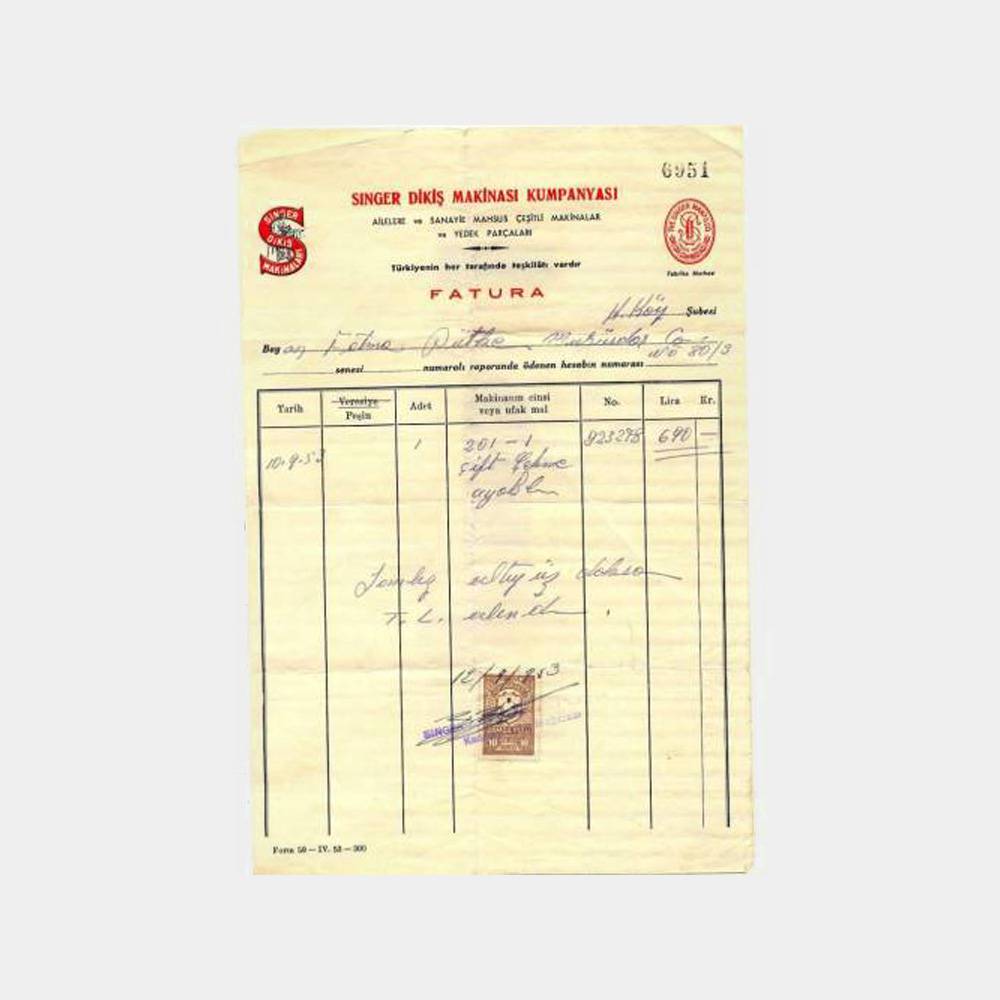 1953 Singer Kadıköy Dikiş Makine Faturası