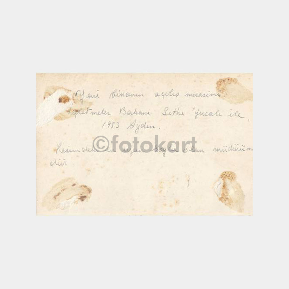 14 x 9 cm ebadında, arkası yazılı, değerli belgesel fotoğraf. Aydın yeni bina açılışında yazılı.