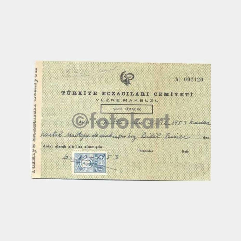 1953 Türkiye Eczacılar Cemiyeti Makbuzu