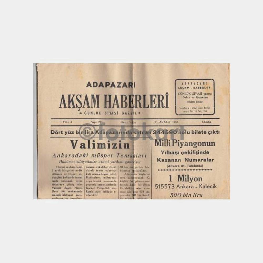 1954 31 Aralık Adapazarı Akşam Haber Gazetesi