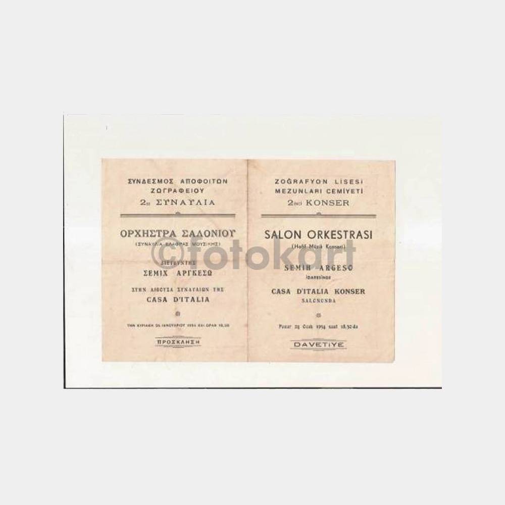 24. 01. 1954 tarihli salon orkestrası davetiye ve programı