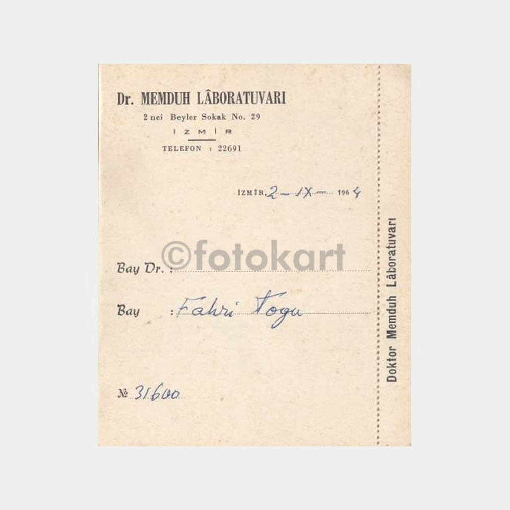 1954 İzmir Dr Memduh Laboratuvar Kartı