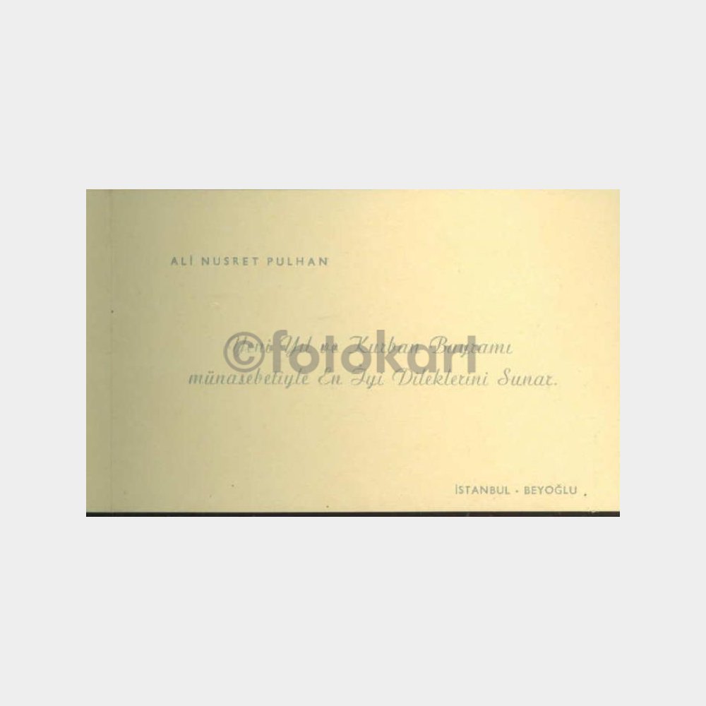 Ünlü filatelist Ali Nusret Pulhan Yeni yıl, Kurban Bayram kutlaması kartı.