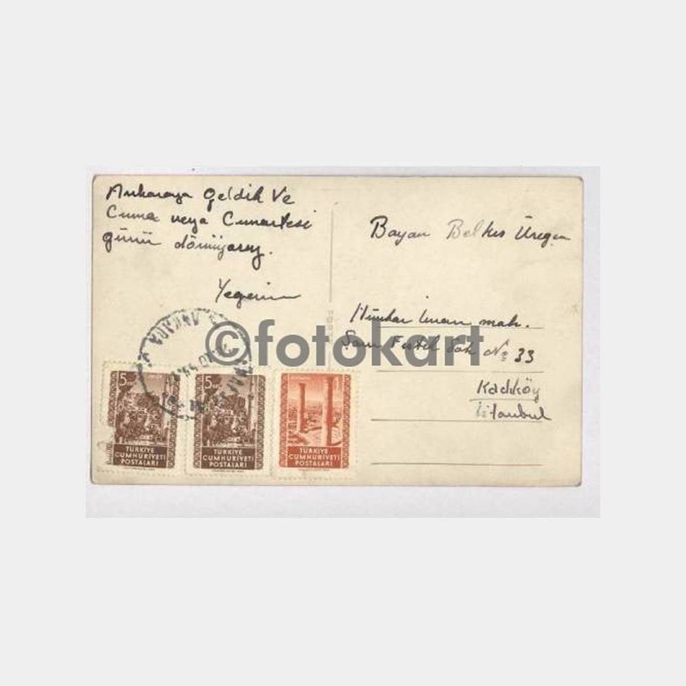Arkası postadan geçmiş damgalı 28. 10. 1955 Anafartalar şubesinden Kadıköy’e postalanmış