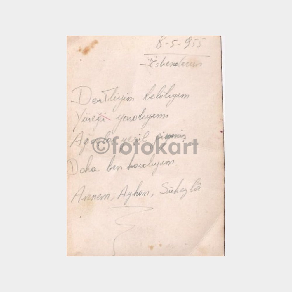 9 x 6 cm ebadında, yazılı.