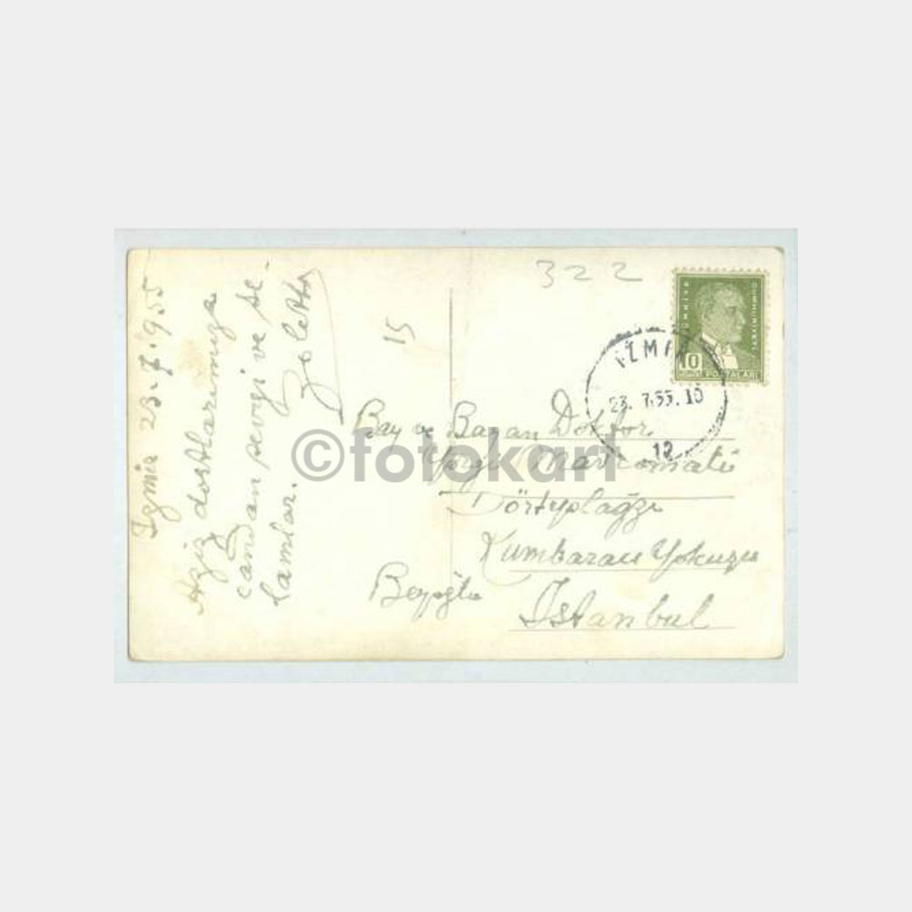Arkası yazılı İzmir posta damgalı 23.7.1955 tarihli nadir kart