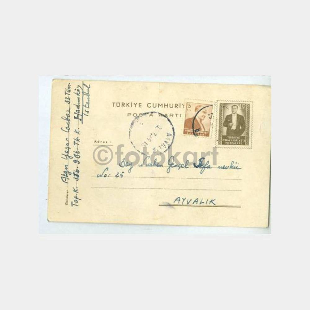 Çok temiz arkası yazılı posta kartı, Ayvalık varış damgaalı
