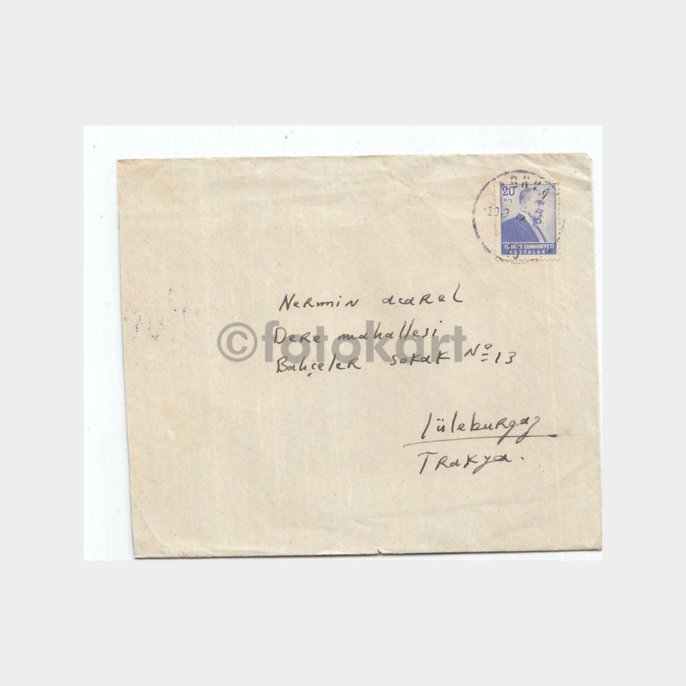 8 x 12 cm ebadında, koleksiyon amaçlı eski mektup zarfı. Kondüsyon iyi.