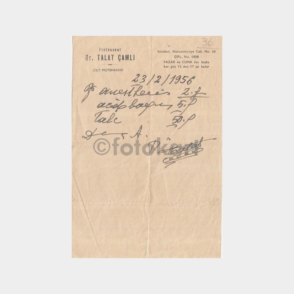 “1956 Nuruosmaniye Dr. Talat Çamlı Reçetesi” için yorum yapan ilk kişi siz olun