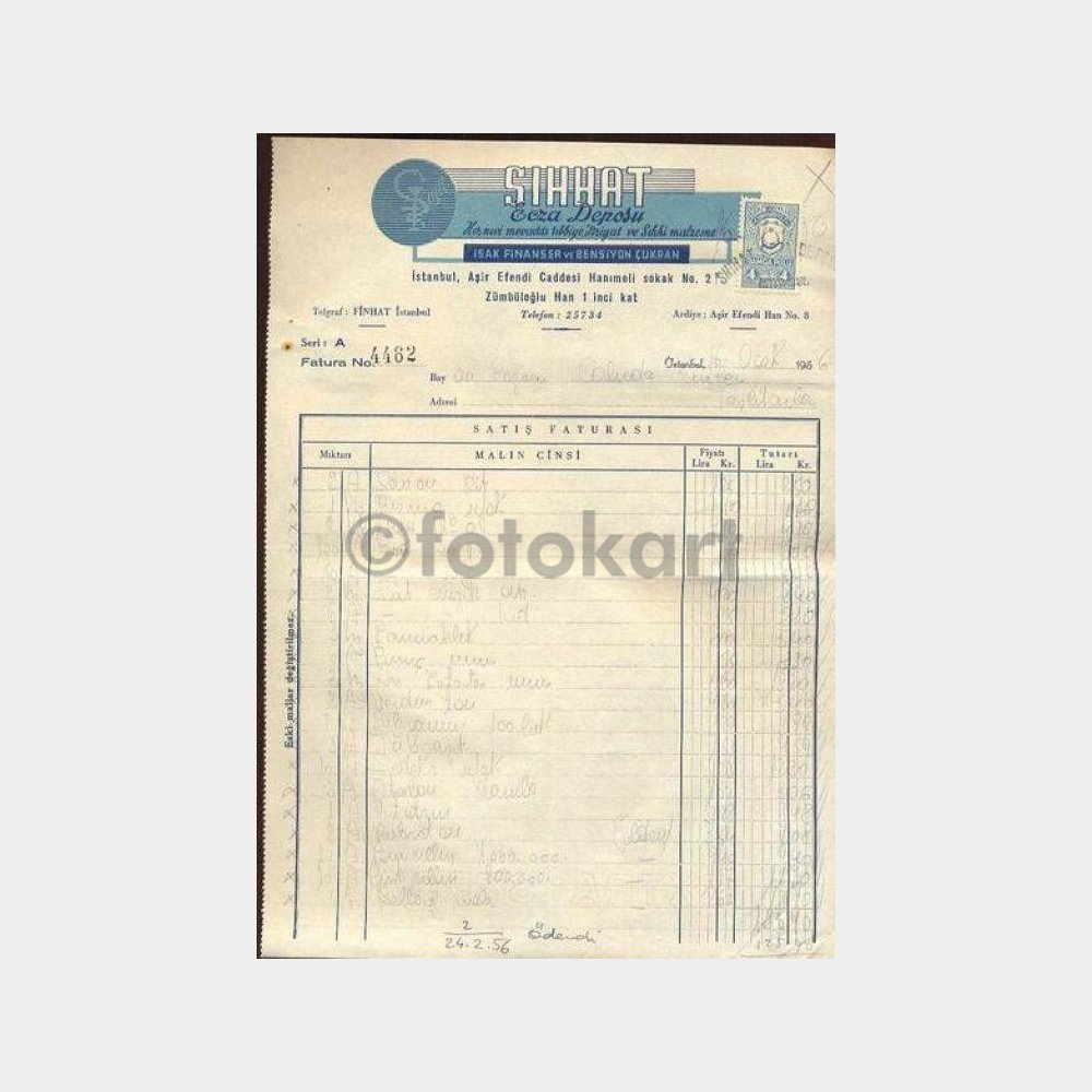“1956 Sıhhat Ecza Deposu Fatura” için yorum yapan ilk kişi siz olun