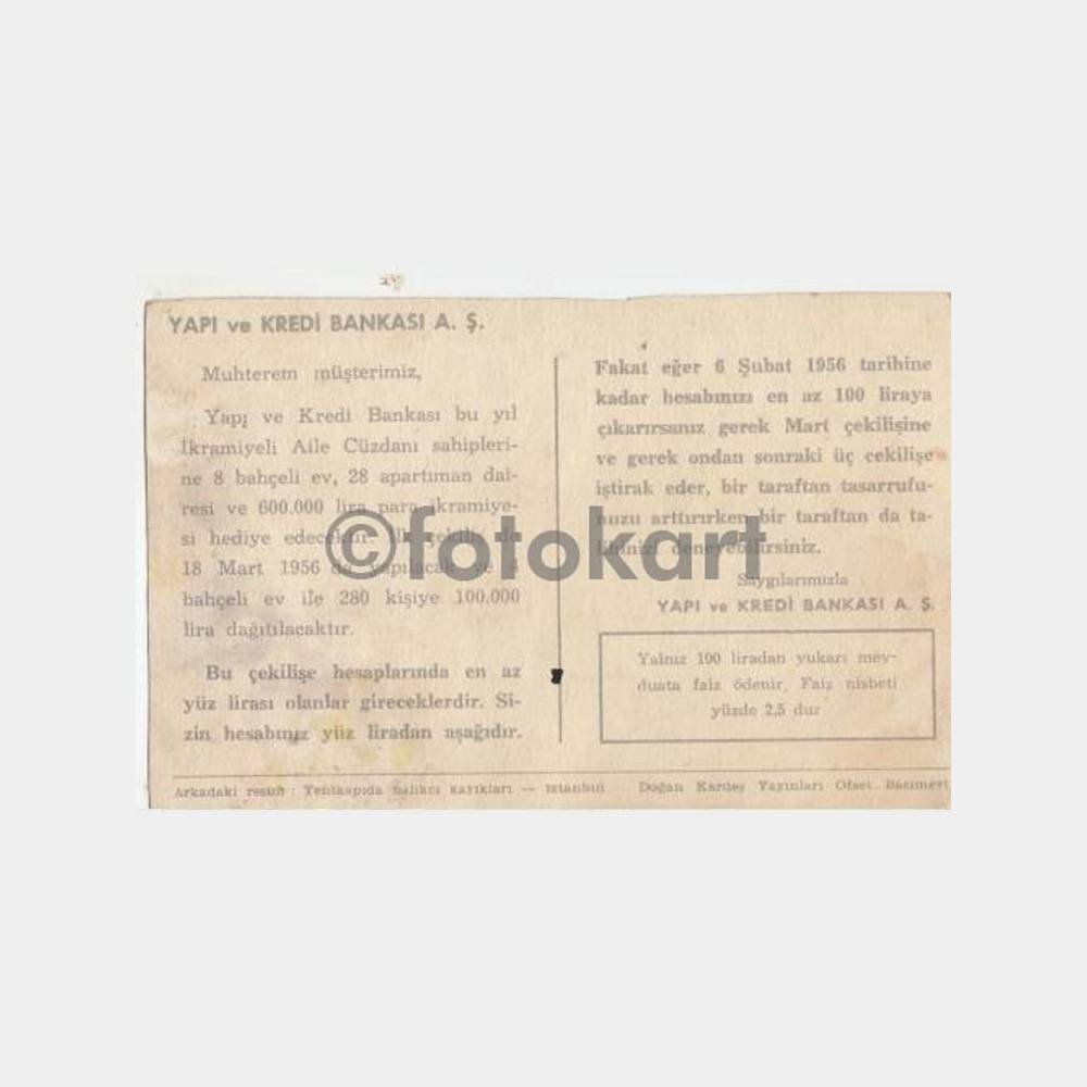 1956 Yapı Kredi Yenikapı Balıkçı İkramiye Kartı