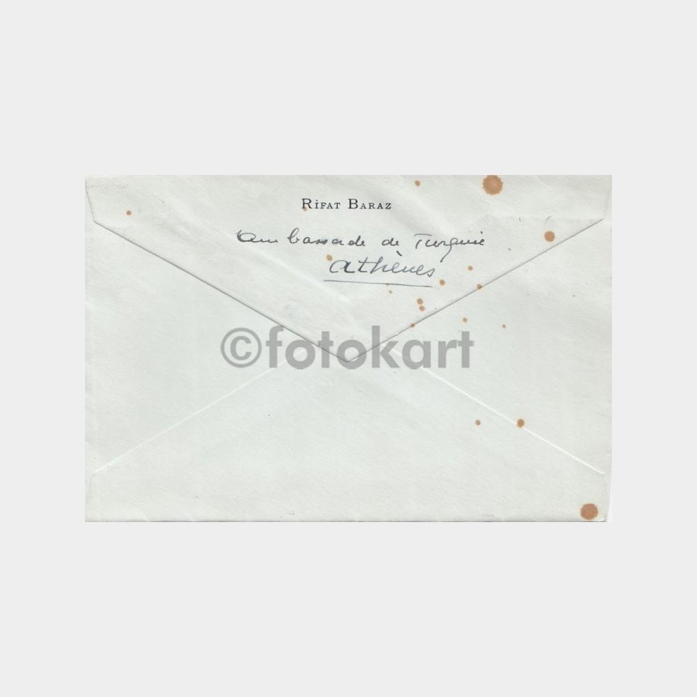 Damgalı pullu, bir adet Yunan zarfı. Türk Kons posta damgalı.