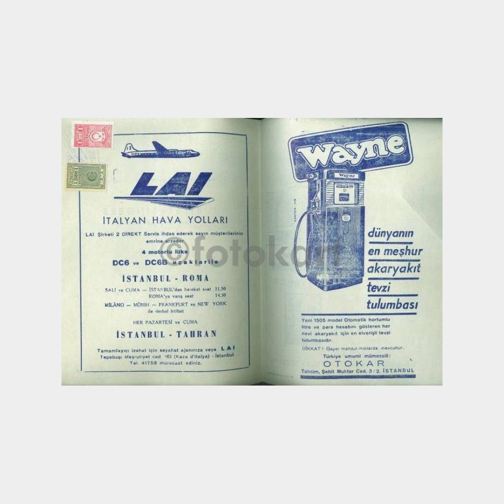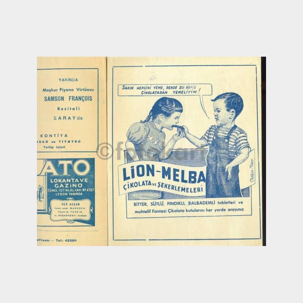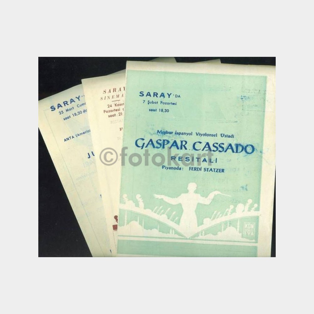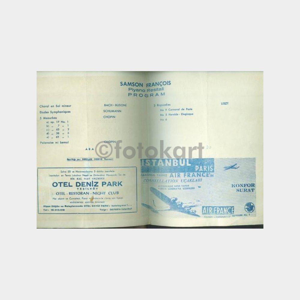 İstanbul Filarmoni Derneği’nin 1956-1958 yılları arasında düzenlenen 12 adet konserine ait program. Saray Sineması’nda arkası çok sayıda reklamlı.