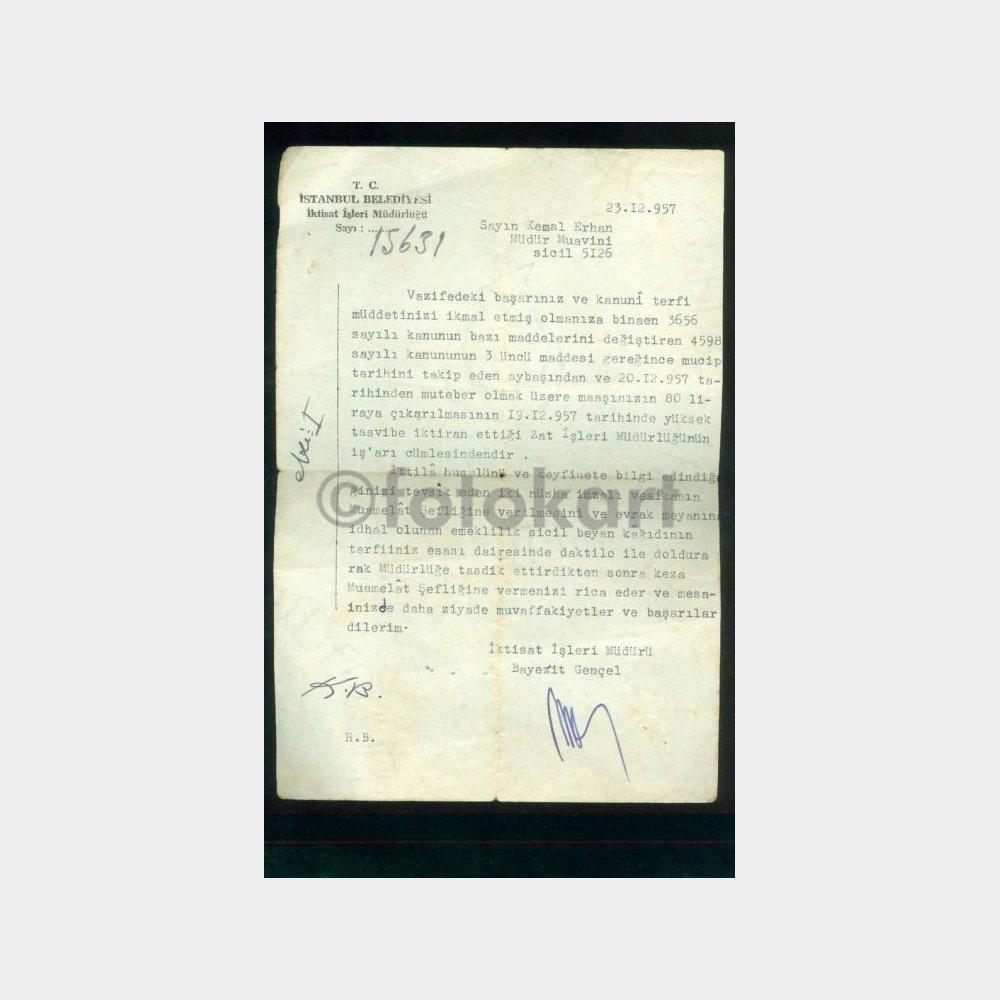 1957 İstanbul Belediyesi İktisat İşleri Yazısı