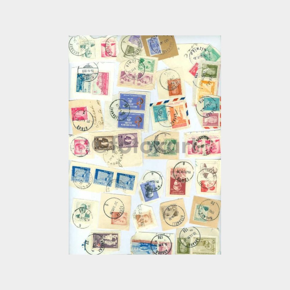 İçinde 100’den fazla damgalı fragman parçaları var. 1958-1961 dönemlerine ait pullar.
