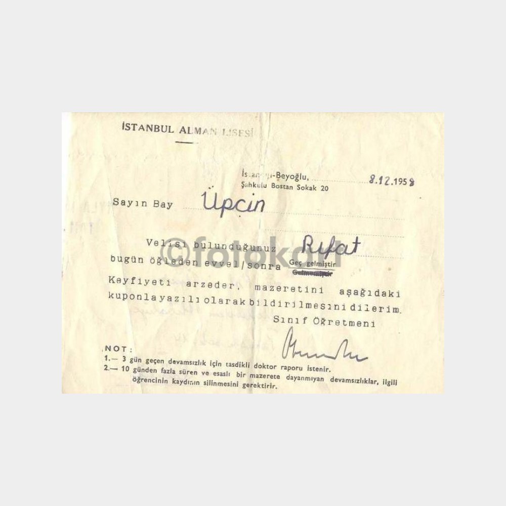 “1958 Alman Lisesi – Veli Bildirim Kağıdı” için yorum yapan ilk kişi siz olun
