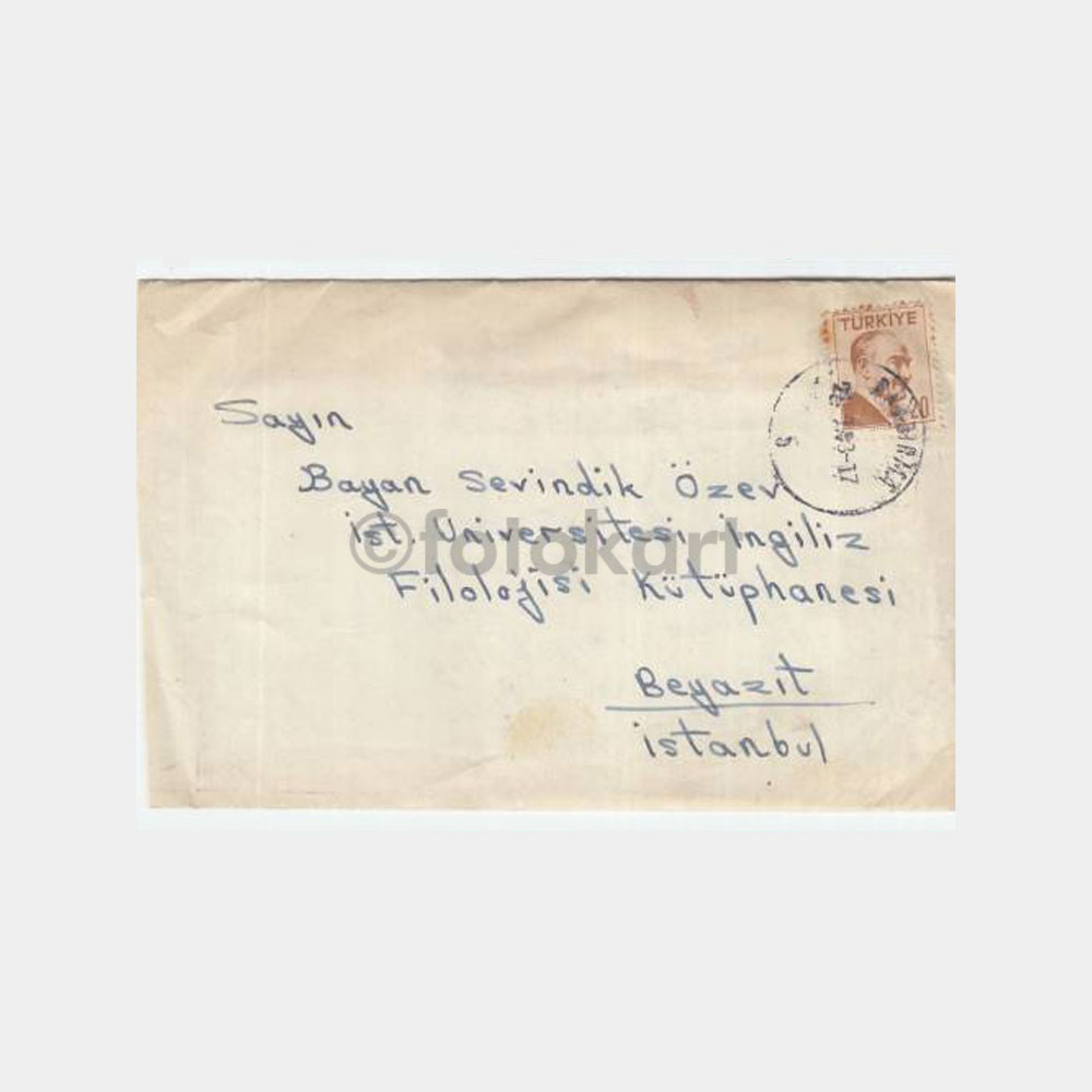 8 x 12 cm ebadında, koleksiyon amaçlı eski mektup zarfı, kondüsyon iyi.