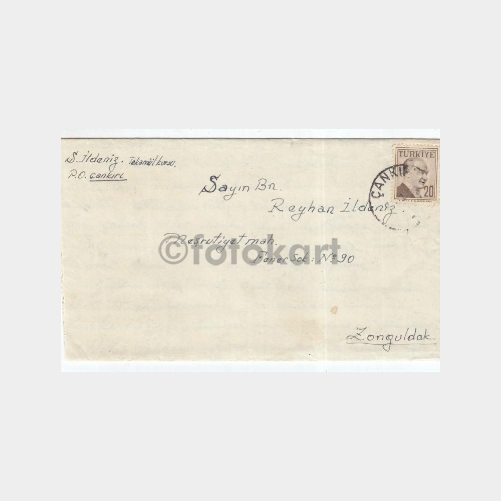 1958 Çankırı Posta Damgalı Zarf