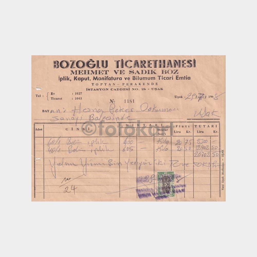 “1958 Uşak İplikçi Tekstil Konulu Fatura Lotu (6 Adet)” için yorum yapan ilk kişi siz olun