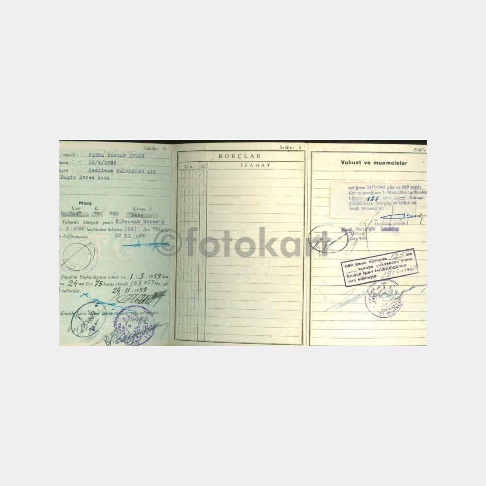 T.C. Bakanlığı özlük işleri müdürlüğünce tanzim olunan tekaüt ve yetimlere mahsus resmi senet.
