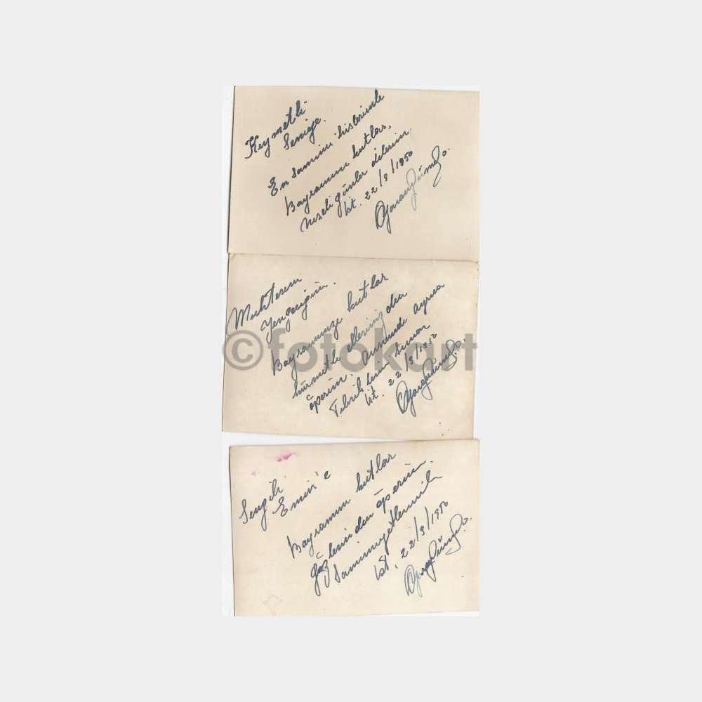9 x 6 cm. Çok temiz durumda, arkası yazılı 3 adet tebrik kartı.