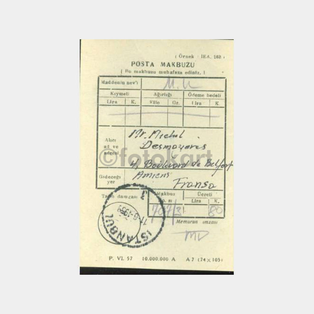11.06.1959 tarihli İstanbul posta taah.makbuzu