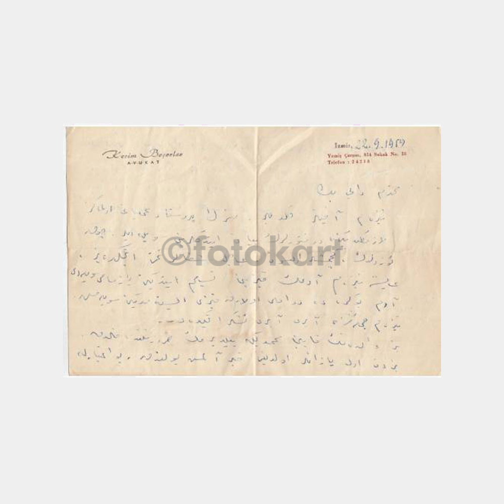 “1959 İzmir Avukat Kerim Beşerler – Osmanlıca Yazısı” için yorum yapan ilk kişi siz olun