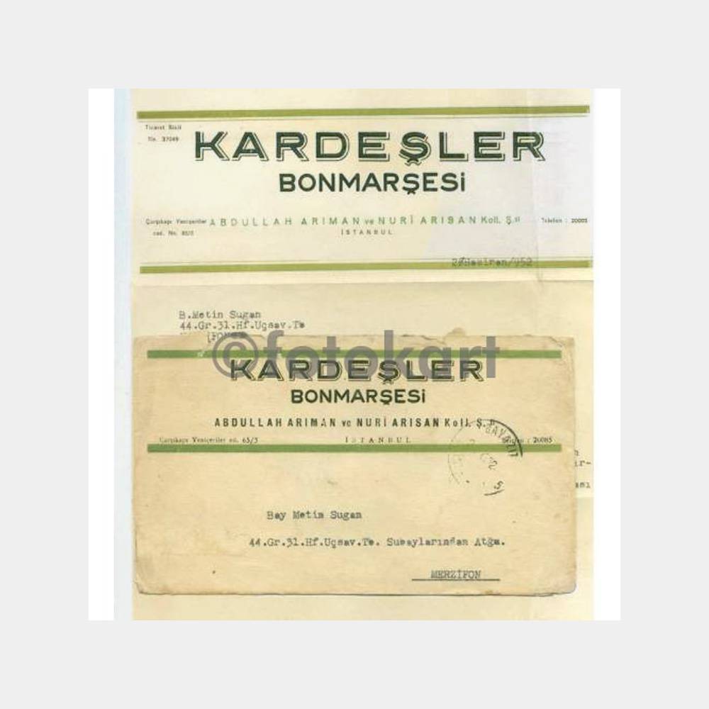 1959 Merzifon Bayazıt Kardeşler Bonmarşesi Mektup