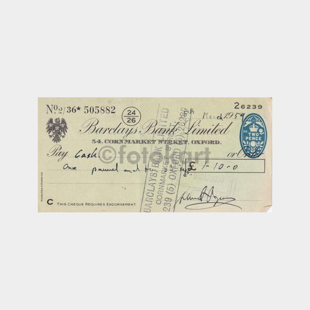 1959 Yabancı Banka – Kullanılmış Çek Yaprağı No. 02