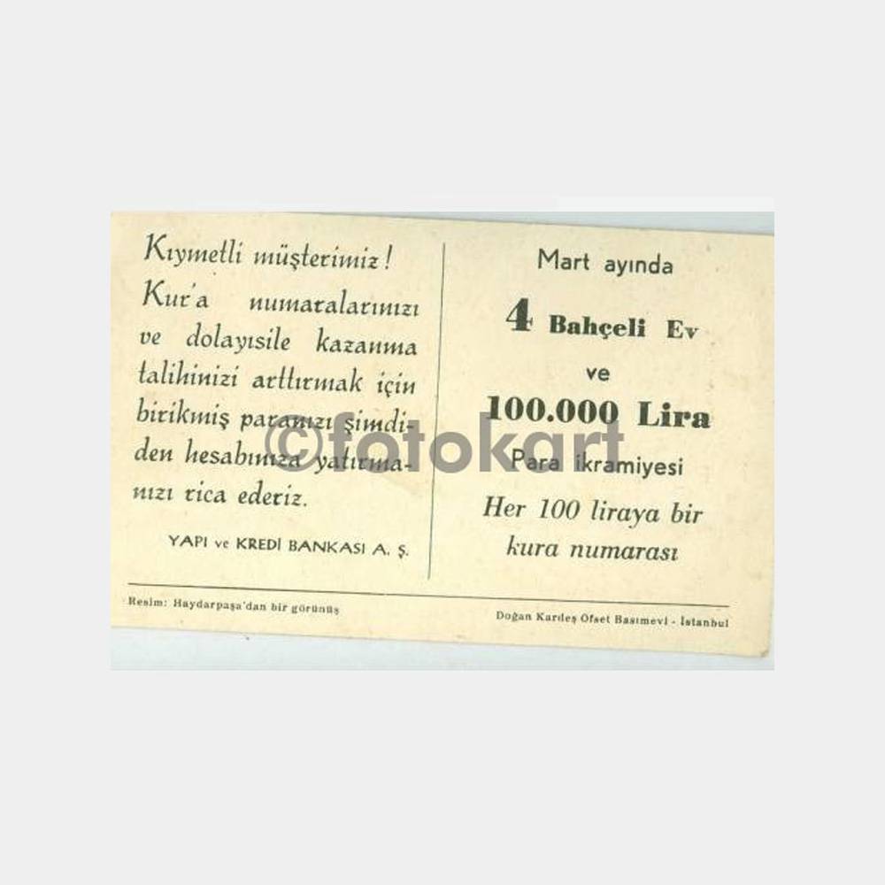 1959 Yapı Kredi Haydarpaşa Garı İkramiye Kartı