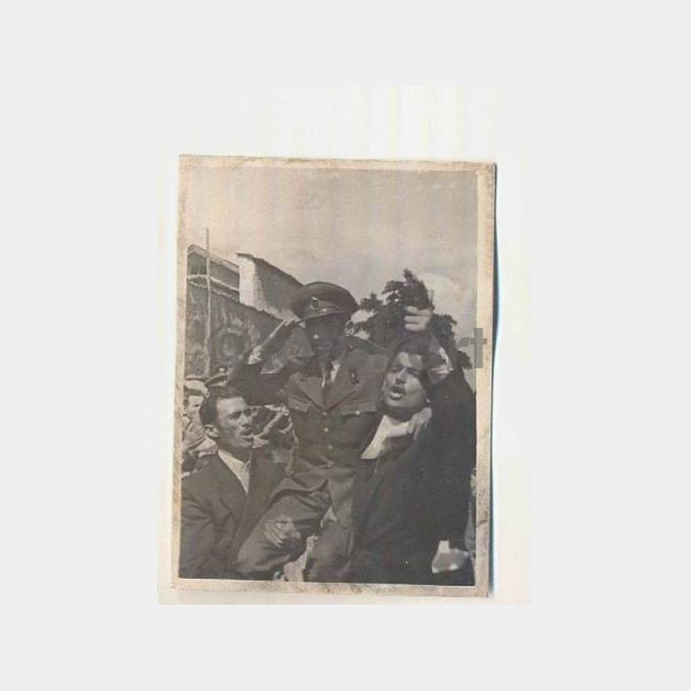 Arkasında 27 mayıs ihtilali dolayısı ile 3. 6. 1960 tarihinde Pamukova’da yapılan yürüyüş anı belirtilmiş,kahraman ordumuzun omuzlarda taşınan mümessili gedikli baş çavuş celal bey. . .