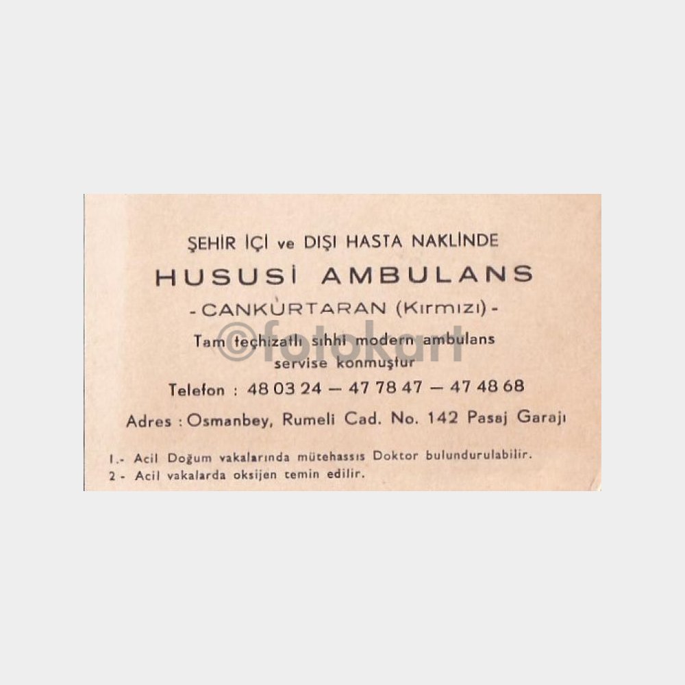“1960 Ambulans İşyeri Kartı (Koleksiyon Amaçlı)” için yorum yapan ilk kişi siz olun
