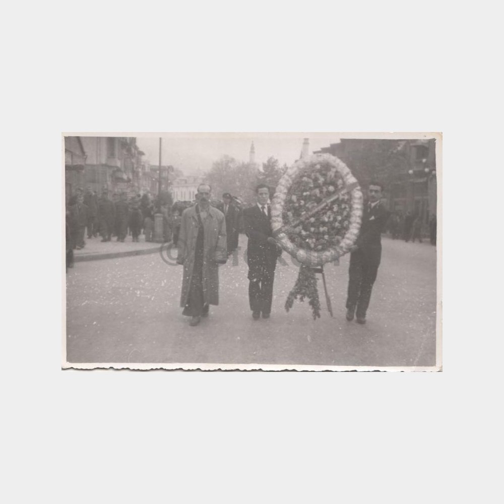 Arkası yazılı. 9 x 14 cm albümden çıkma 2 adet fotoğraf, çelenk üzerinde Türk-İş Türk Milli İş Konfederasyonu yazılı.