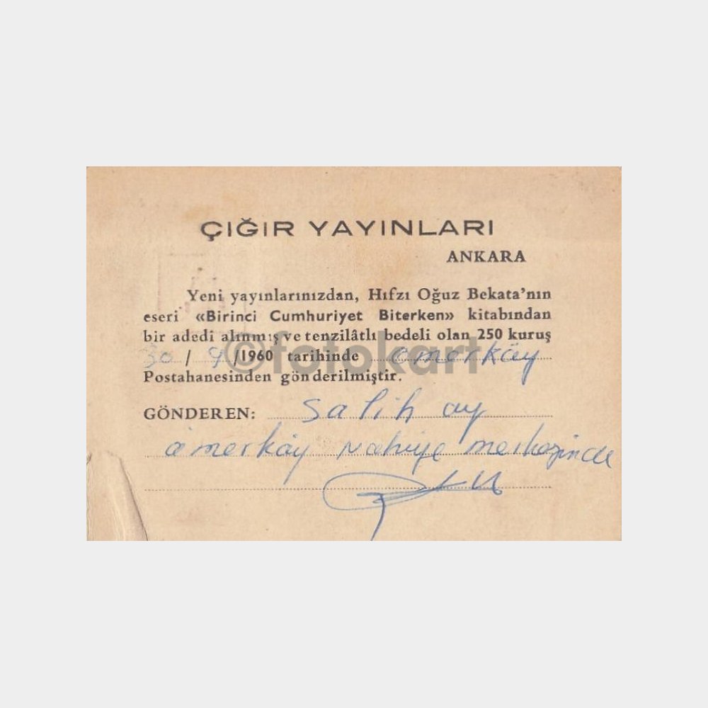 1960 Çığır Yayınevi Kartı (Susurluk Ömerköy Posta Damgalı)