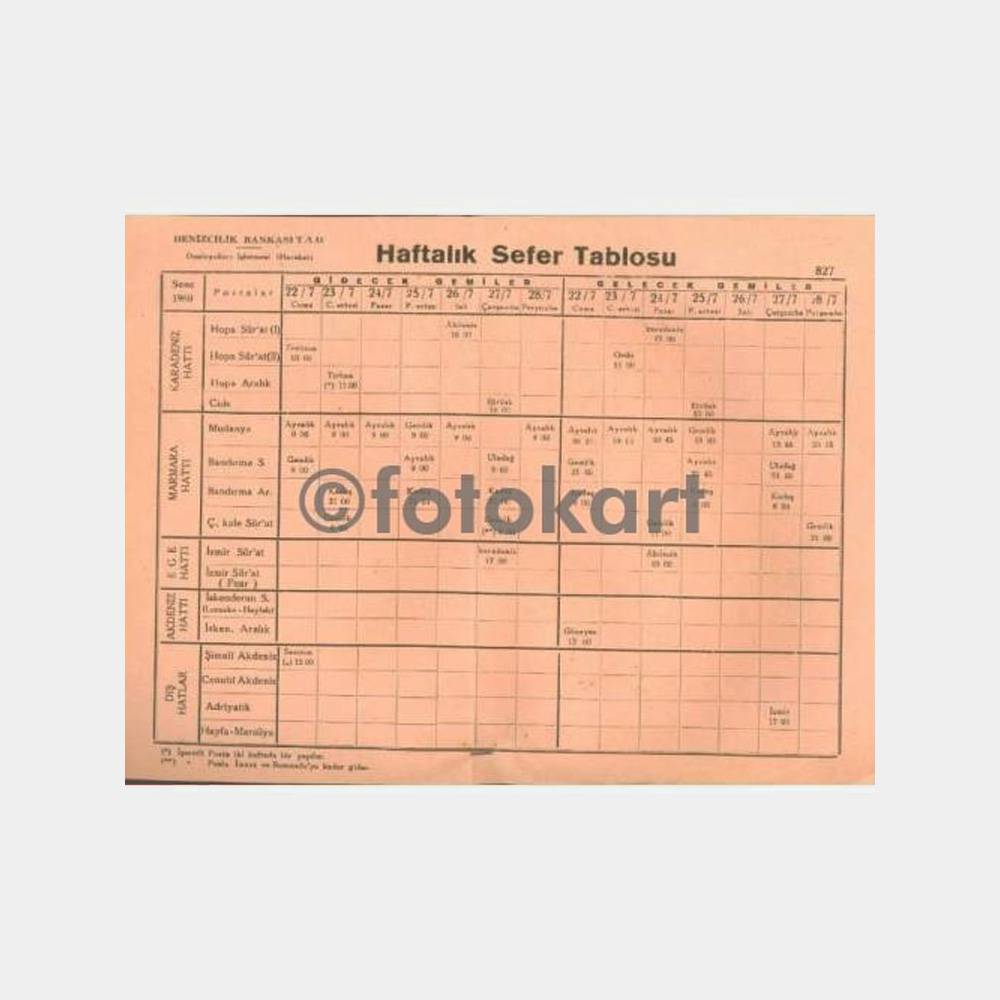 Denizyolları işletmesi haftalık gemi sefer tarifesi, tek sayfa