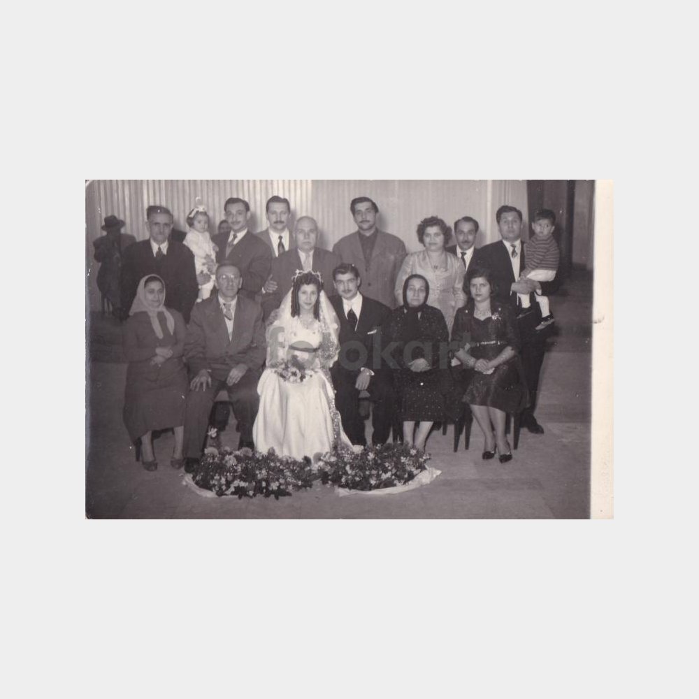 1960 İzmir Foto Sema – Muammer Kırmızıbıyık Damgalı Gelin Damat Fotoğraf