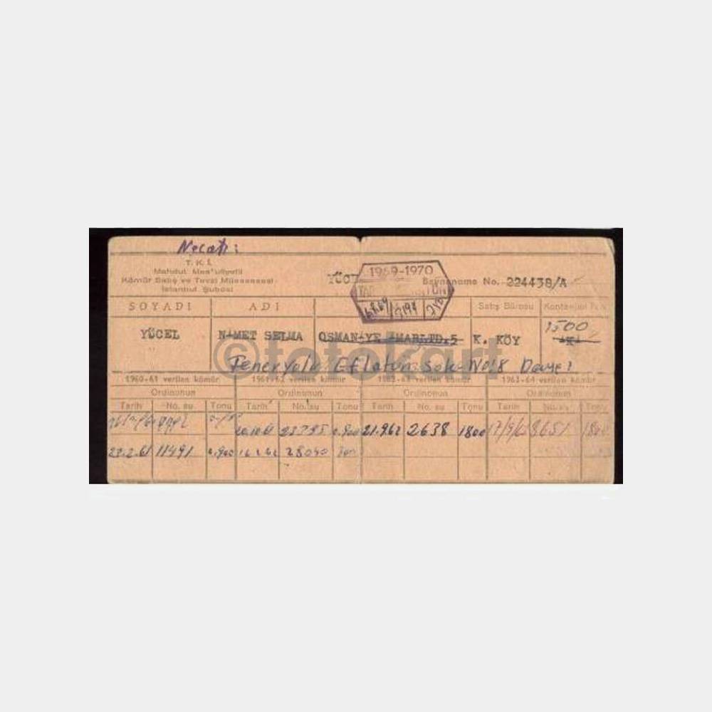 1960 Kadıköy Feneryolu Kömür Tevzi Kartı