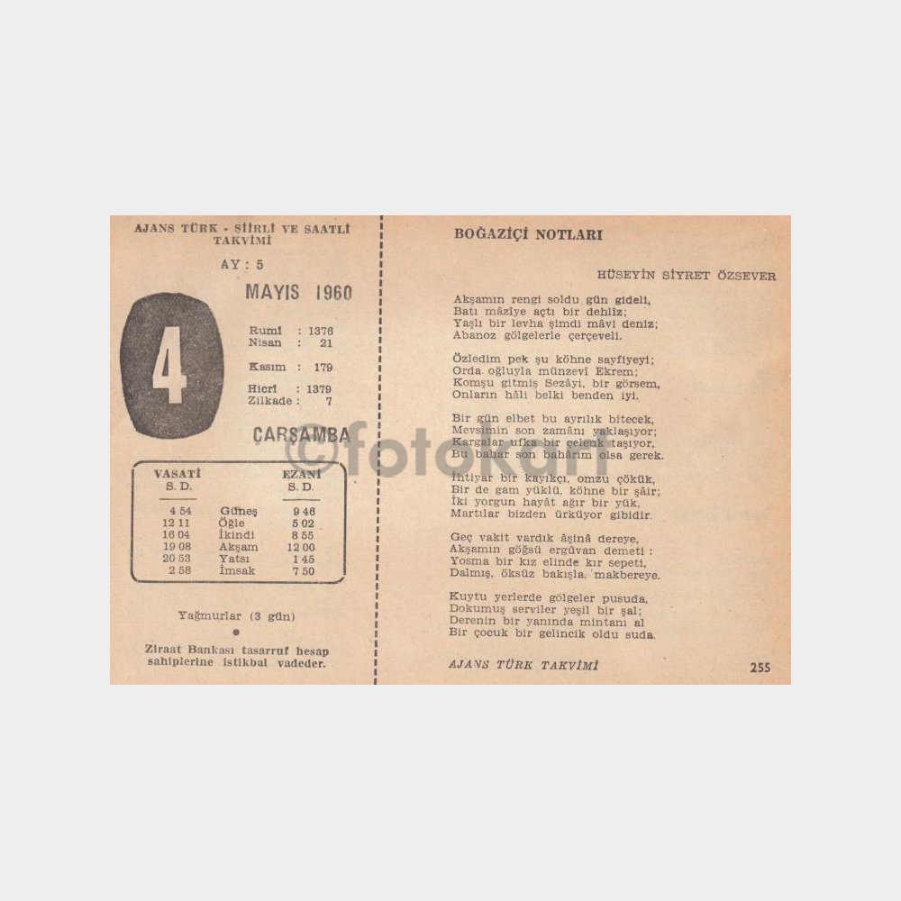 1960 Mayıs 4 – Ajans Türk Şiirli Takvim Yaprağı