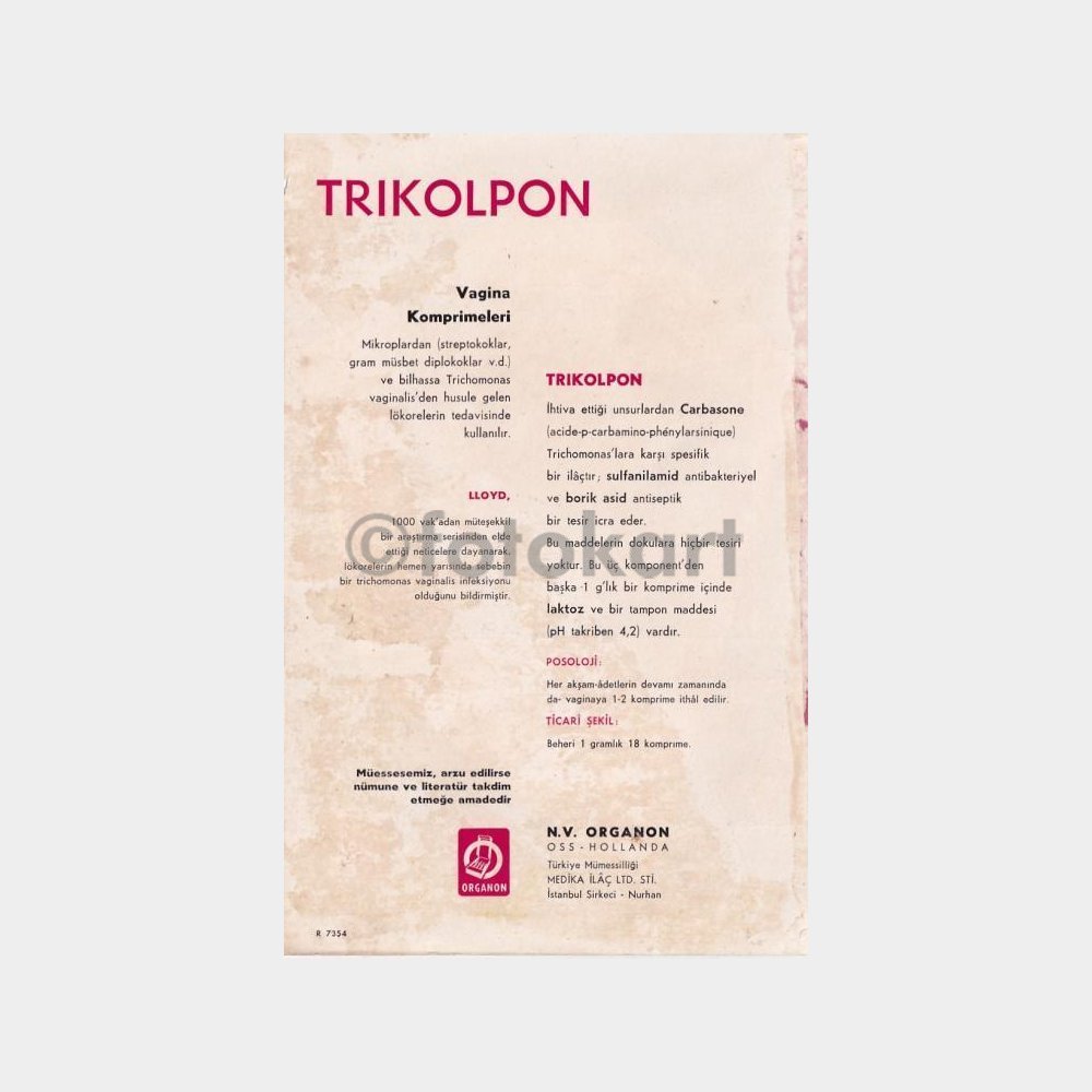 1960 Organon Fabrikası İlaç Tanıtım Broşürü (Trikolpon)