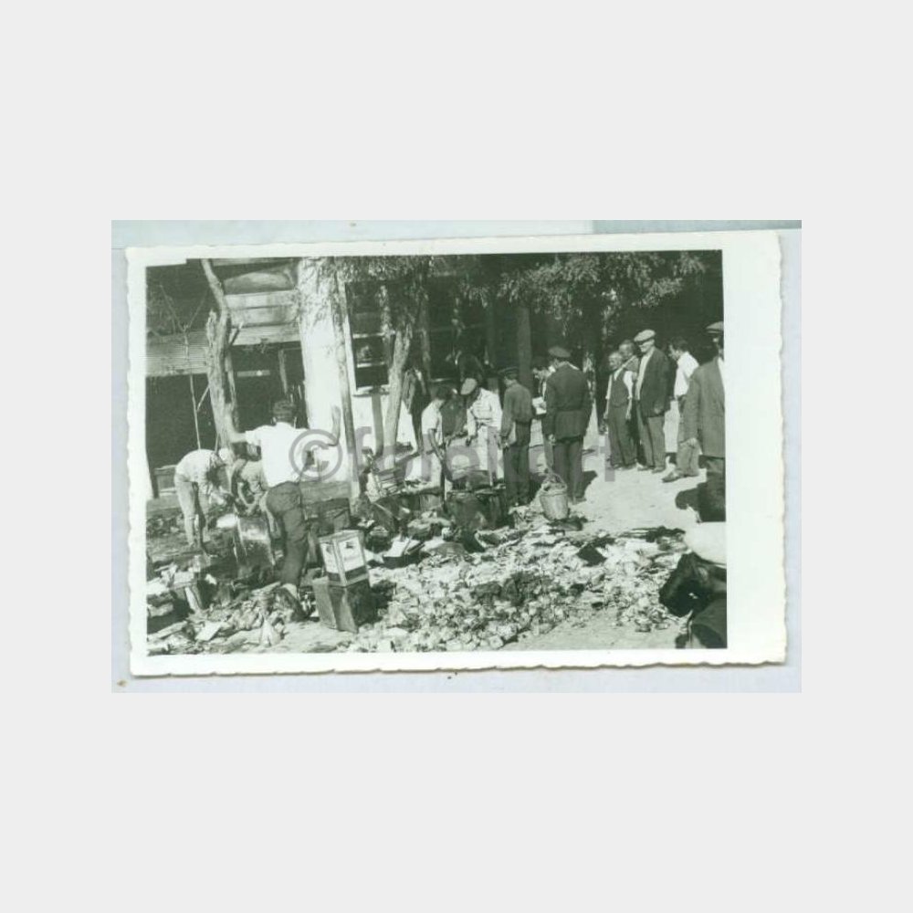 12 x 8 cm. ebadında, arkası yazısız fotoğraf. Mobil zift bidonları konulu.