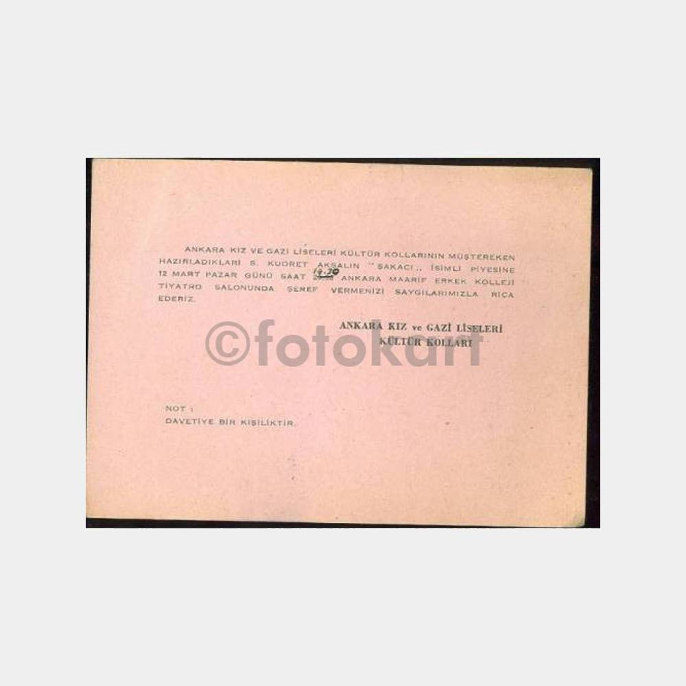 İki lisenin müştereken hazırladıkları “Şakacı” isimli piyes davetiyesi.