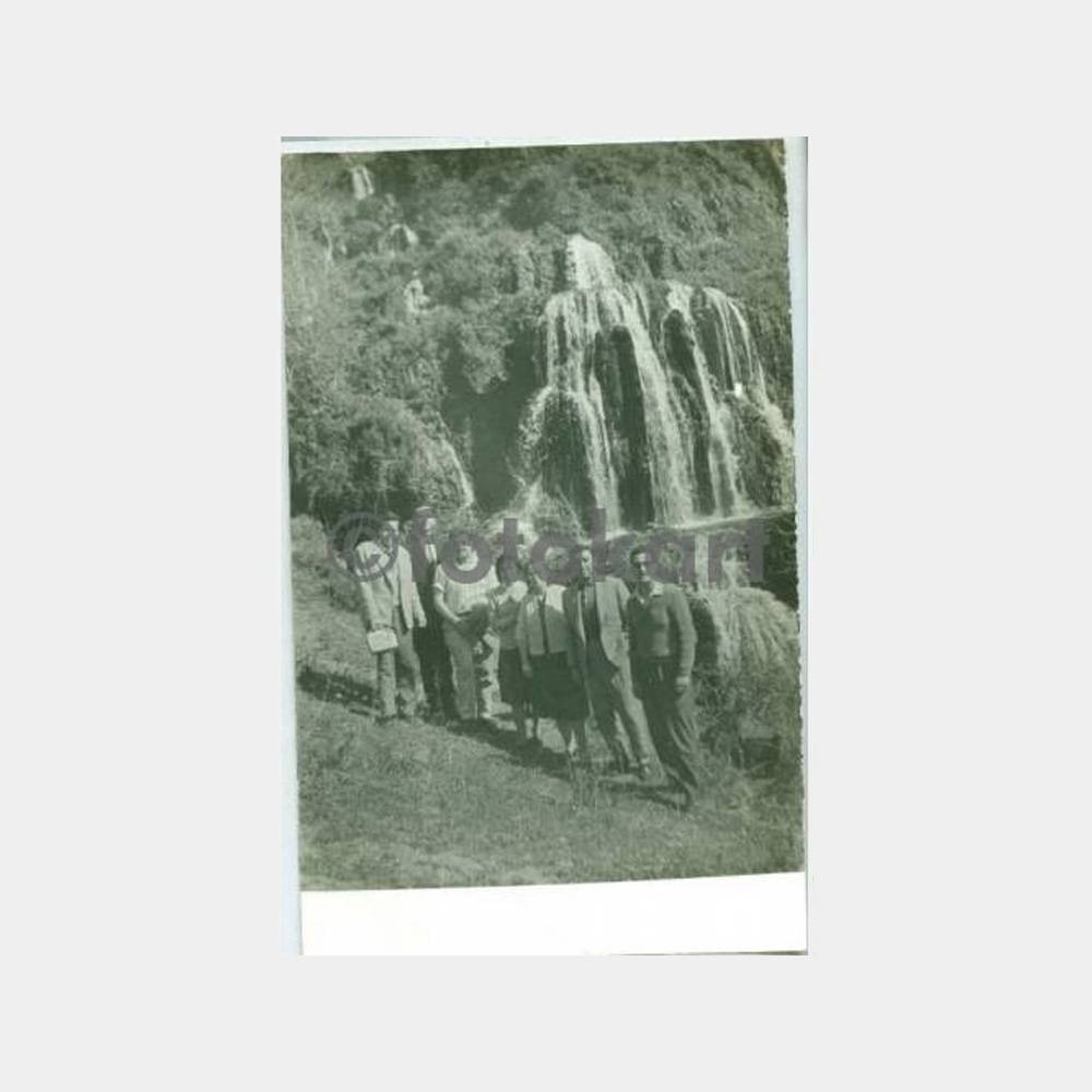 14 x 9 cm ebadında arkası yazılı 2 adet foto, Harbiyedeki otelin terasında öğle yemeği ve Harbiye Çağlayanı