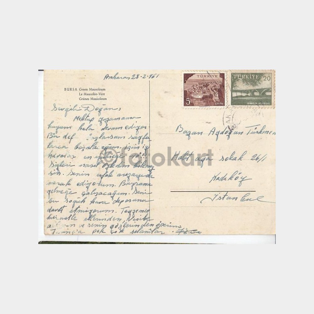 1961 Bursa Yeşil Türbe Görünüş Kartpostal
