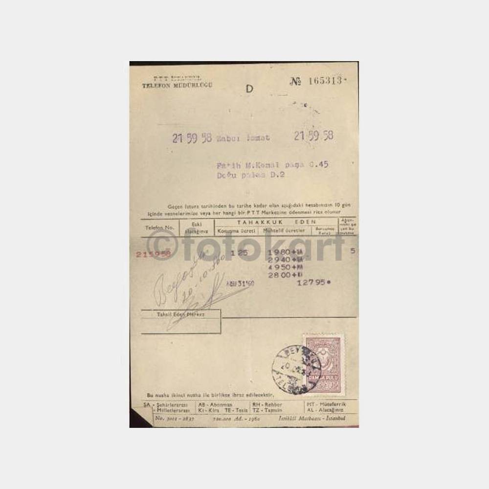 Pullu ve damgalı telefon faturası