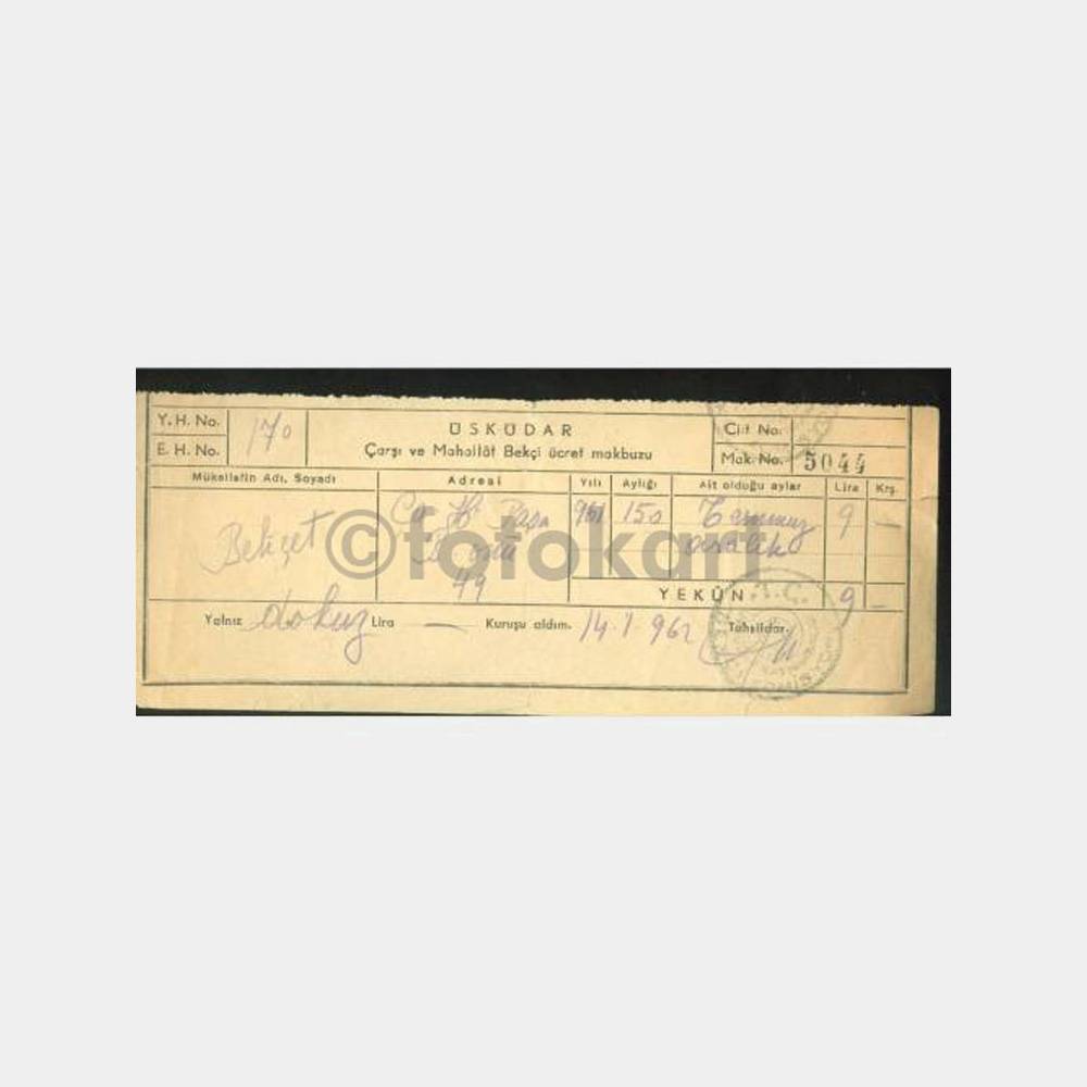 “1961 Üsküdar Bekçi Ücret Makbuzu” için yorum yapan ilk kişi siz olun