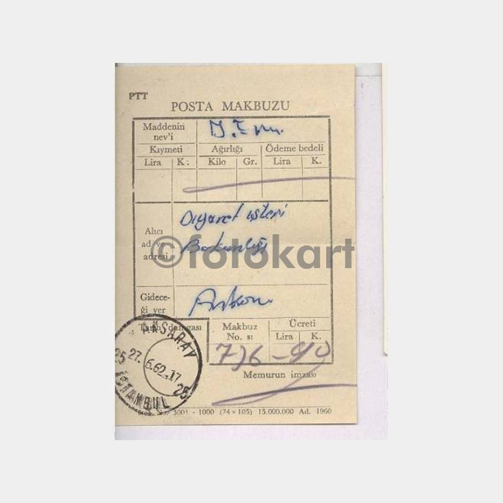 1962 Aksaray İstanbul Posta Alındı Makbuzu
